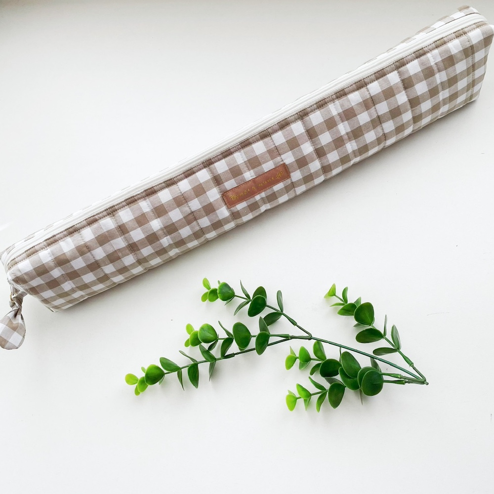 Maak breien nog leuker met deze schattige breinaalden etui gingham latte. Deze super handige breinaalden etui is perfect om al je breinaalden in op te bergen. Gemaakt van katoen en deze etui is ook gevoerd met een katoenen stof. Met deze etui heb je al je breinaalden bij elkaar en kan je deze voor elk project gebruiken. Door het formaat van de etui is deze erg geschikt om onderweg mee te nemen. De rits heeft een strikje van dezelfde stof zodat je de etui makkelijk open kunt maken, buiten dat het strikje er ook gewoon gezellig uitziet. Je bent vaak lang met een project bezig en dan is het fijn dat al je spulletjes die je gebruikt ook erg cute er uit zien.