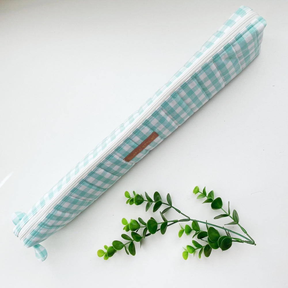 Maak breien nog leuker met deze schattige breinaalden etui gingham mint. Deze super handige breinaalden etui is perfect om al je breinaalden in op te bergen. Gemaakt van katoen en deze etui is ook gevoerd met een katoenen stof. Met deze etui heb je al je breinaalden bij elkaar en kan je deze voor elk project gebruiken. Door het formaat van de etui is deze erg geschikt om onderweg mee te nemen. De rits heeft een strikje van dezelfde stof zodat je de etui makkelijk open kunt maken, buiten dat het strikje er ook gewoon gezellig uitziet. Je bent vaak lang met een project bezig en dan is het fijn dat al je spulletjes die je gebruikt ook erg cute er uit zien.