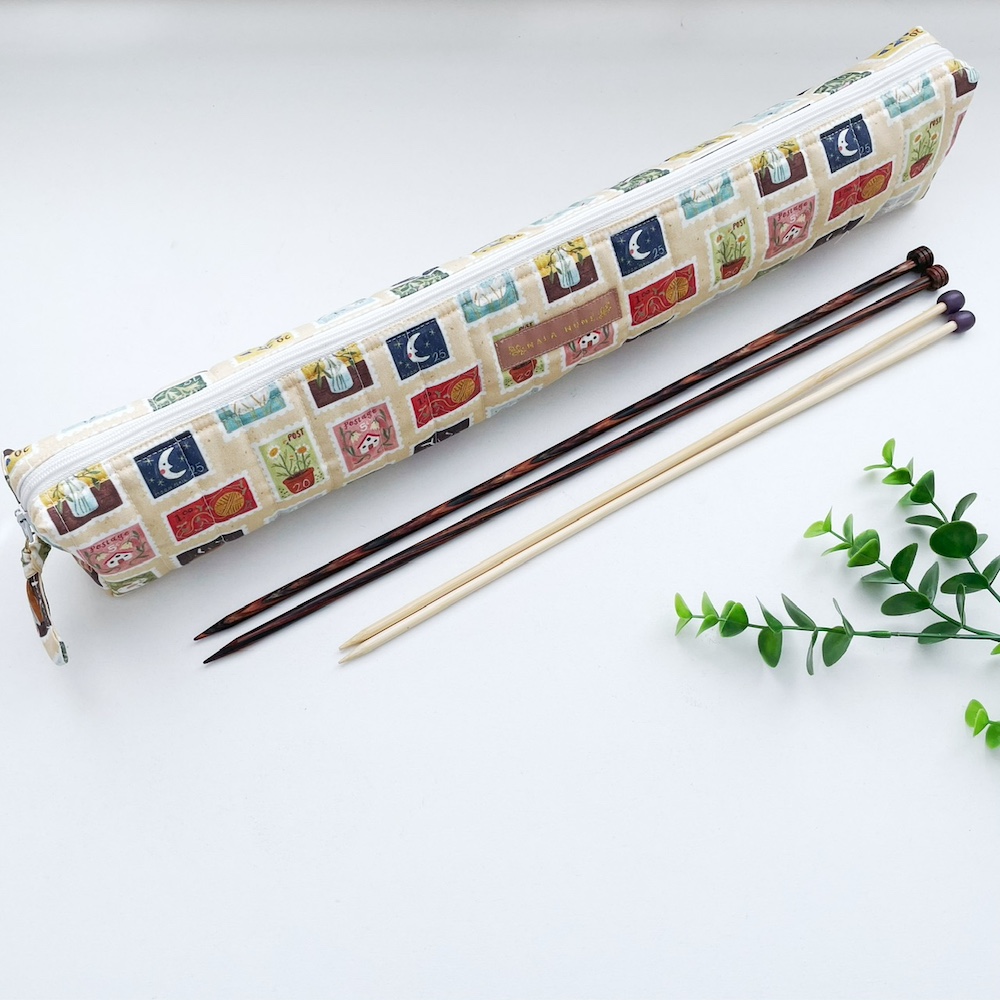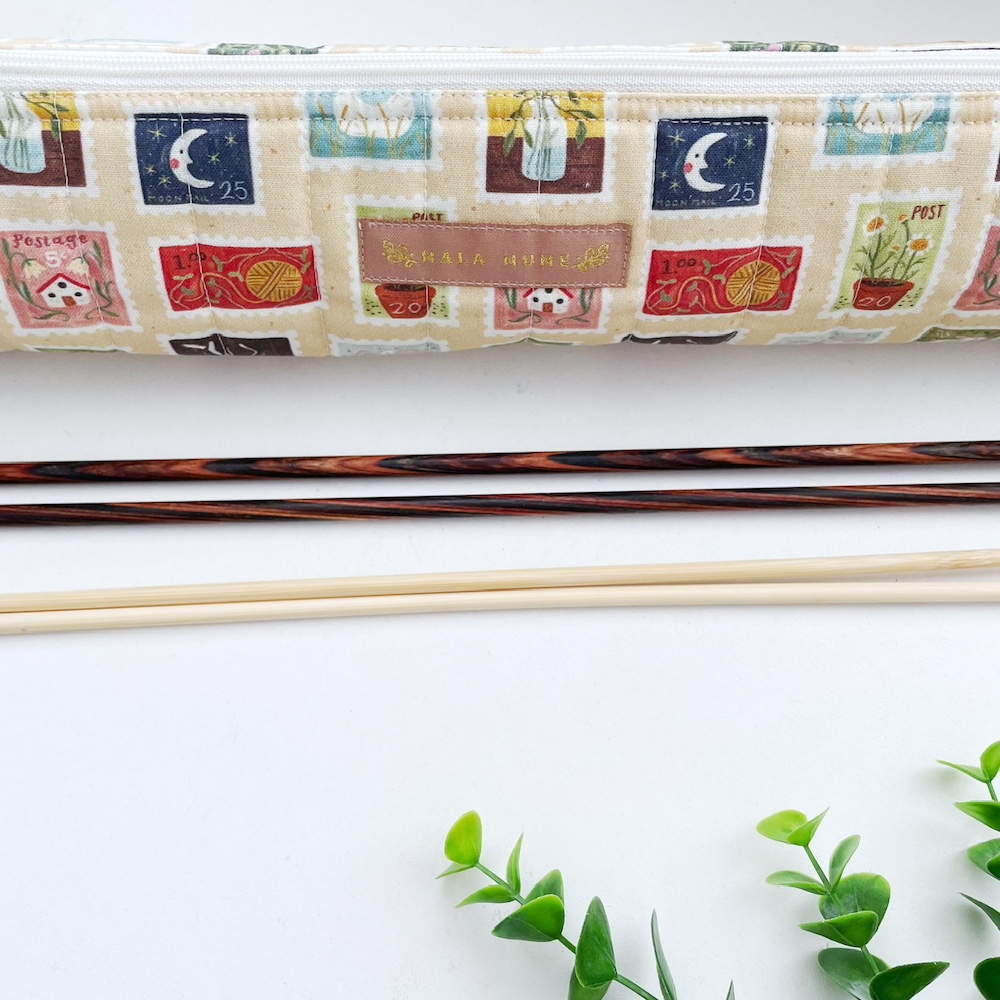 Maak breien nog leuker met deze schattige breinaalden etui stamps. Deze super handige breinaalden etui is perfect om al je breinaalden in op te bergen. Gemaakt van katoen en deze etui is gevoerd met een katoenen stof. Met deze etui heb je al je breinaalden bij elkaar en kan je deze voor elk project gebruiken. Door het formaat van de etui is deze erg geschikt om onderweg mee te nemen. De rits heeft een strikje van dezelfde stof zodat je de etui makkelijk open kunt maken, buiten dat het strikje er ook gewoon gezellig uitziet. Je bent vaak lang met een project bezig en dan is het fijn dat al je spulletjes die je gebruikt ook erg cute er uit zien.