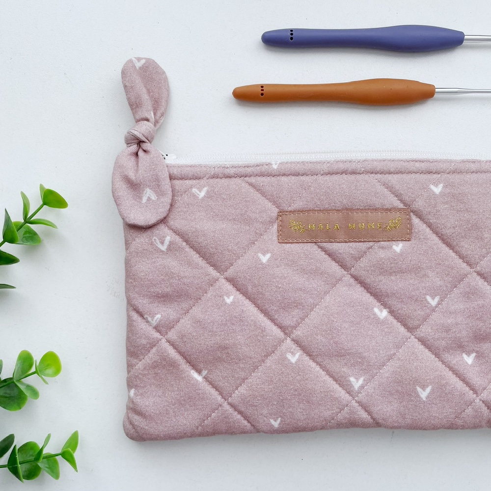 Door het kleine formaat van de etui is deze erg geschikt om onderweg mee te nemen. De rits heeft een strikje van dezelfde stof zodat je de etui makkelijk open kunt maken, buiten dat het strikje er ook gewoon gezellig uitziet. Je bent vaak lang met een project bezig en dan is het fijn dat al je spulletjes die je gebruikt ook erg cute er uit zien.